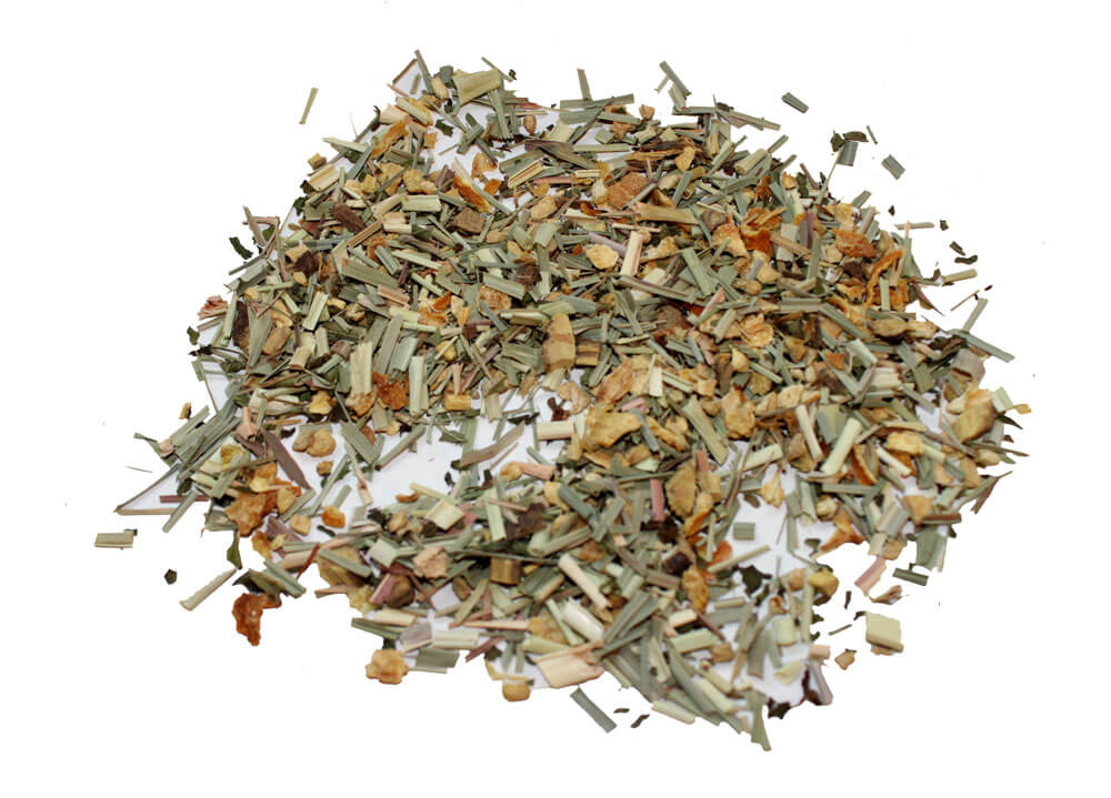 Zutaten: Lemongras, Ingwer, Zitronenschalen, Süßholz, Pfefferminze, Schwarzer Pfeffer.